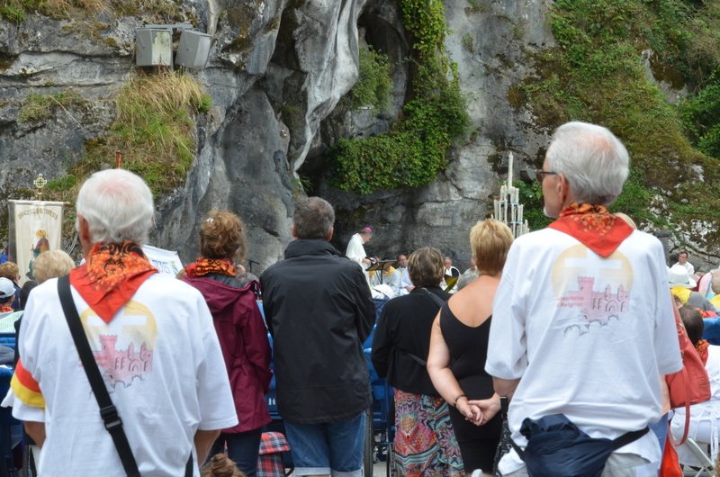 Aujourd’hui c’est non sans les premiers signes de fatigue que pèlerins et hospitaliers se sont réveillés afin de commencer leur première journée à Lourdes, remplie de temps forts. Le premier était donc la traditionnelle messe à la grotte de Massabielle, le diocèse s’est retrouvé en compagnie d’autres Hospitalités telles que celles de Poitiers et de Troyes. Les pèlerins ont donc ainsi prié et célébré la messe, puis ils se sont rendus pour la photo, au pied de la basilique du Rosaire. Après quoi ils ont finalement regagné l’accueil Marie ST Frai pour le repas du midi.